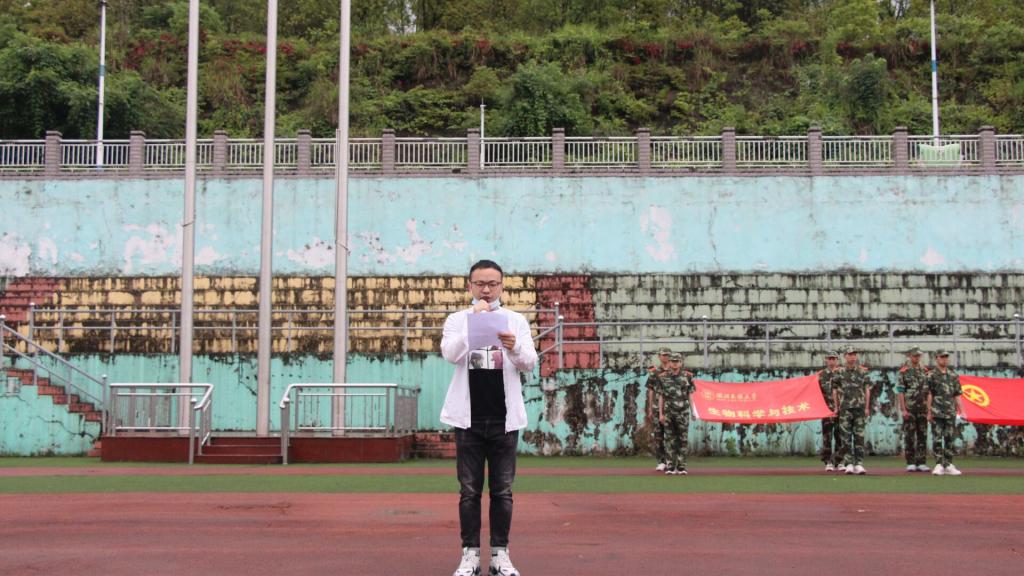 活动伊始,进行升国旗仪式,第一项,出旗,国旗护卫队踏着稳健的步伐前进,全体师生行注目礼;第二项,升旗,庄严的国歌奏起,鲜红的五星红旗冉冉升起,飘荡在蓝天白云中。“礼毕!”主持人说道。紧接着是迎团旗院旗仪式,全体成员对团旗院旗行注目礼。接着是重温誓词环节,由林学院学生代表罗怡带领宣誓。随后是我院学生科老师陈杰发言,陈杰讲述了中国共产党建党100周年来,我党敢于面对挫折,克服了许多困难,希望我们新时代的大学生能够不负人民重托,不负历史的选择,成大才,担大任。接着是0720404支部团员代表陈洁的发言,陈洁的发言引领大学生的思想走向正轨,引导新时代青年走积极爱国道路,坚信理想信念,学习党史,为家乡,为国家奉献自己的一份力量。