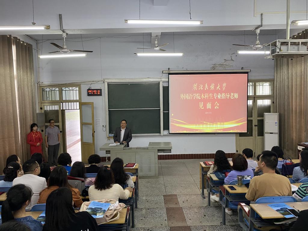 2021-05-14 09:46:565月13日,外国语学院在文汇楼6401举行了本科生专业导师见面会。本次会议由学生科科长粟登平主持,外国语学院领导班子成员、学生科辅导员、学院全体本科生专业导师及被指导学生参加了此次导师见面会。