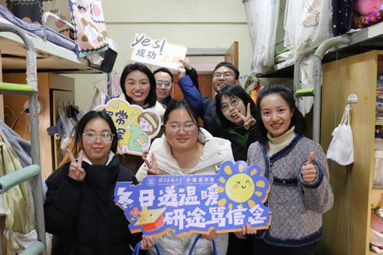 2024-12-20 09:32:52研途漫漫,并非独行。为坚定考研学子备考信心,缓解考研压力,外国语学院于12月19日举办“冬日送温暖,沿途笃信念”暖心活动。活动分为教师走访宿舍、学院派送礼包两个环节。