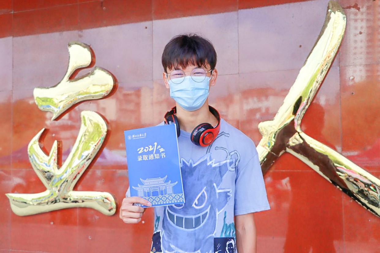 初见黄晓烨,他带着一副黑红色耳机,身着一套休闲服准备前往体育学院报到。从广西来到湖北恩施,他不远万里,踏上求学之路。面对记者的采访,他说道:“我觉得民大的建筑带有民族风格,极具特色。今天初入民大,感觉浑身充满了动力,我期待在大学收获一个全新的自己。”