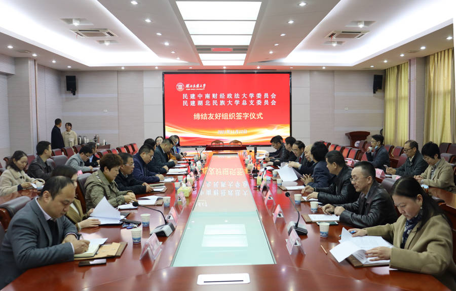 交流会上,民建中南财经政法大学委员会与民建fun88乐体育官网体育总支委员会举行了缔结友好组织签字仪式。