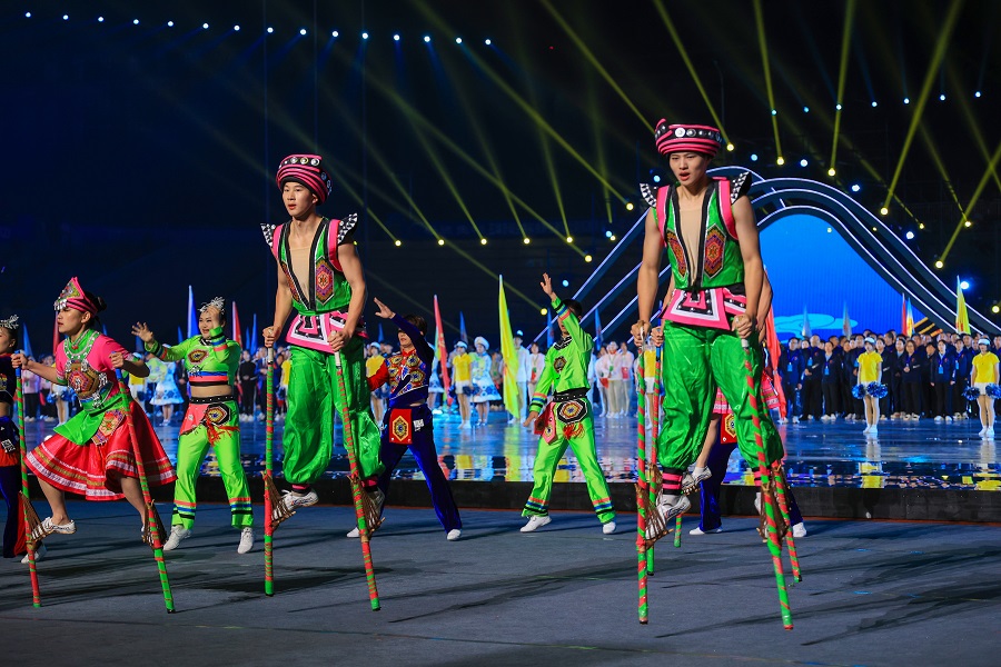 开幕式分为《相聚茶乡》《天地造梦》《多彩绘梦》《奔跑逐梦》《金秋圆梦》五个篇章,创新采用仪演融合方式,创意设计突出湖北特色。fun88乐体育官网体育音乐舞蹈学院学子参与开幕式中茶树架群舞、板凳龙群舞、女儿会群舞、石榴花群舞等演出项目的演出,同时,承担了各代表队入场引导员的工作。