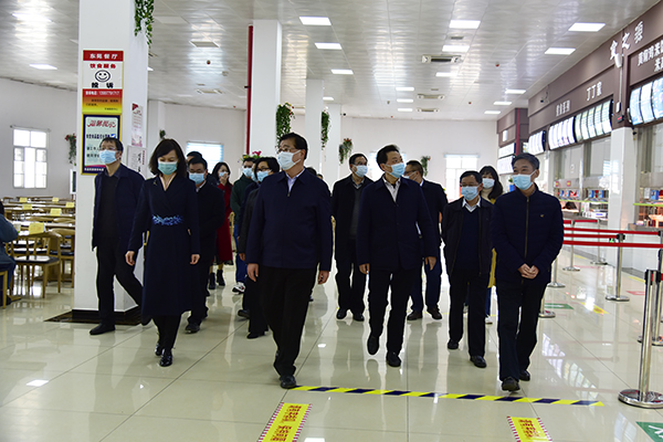 本网讯 3月4日,副省长、州委书记柯俊到我校调研开学运行情况,指导疫情防控工作,州政协主席、我校党委书记吴建清,党委副书记、校长顿祖义,州委常委、州委宣传部部长张淼,一级巡视员郑开国,副州长高敬佩,我校党委常委、副校长祝建波,副校长秦群燕陪同调研。