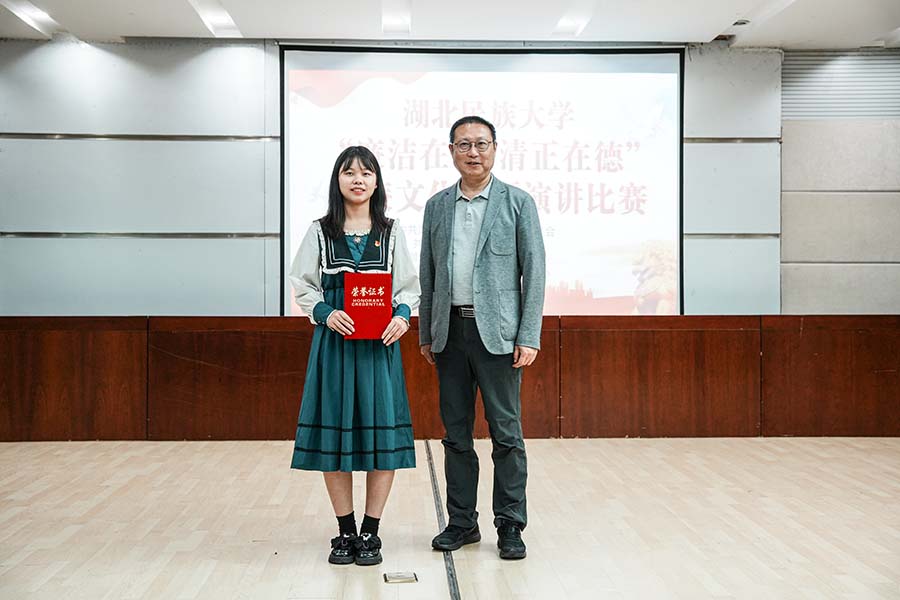 比赛现场,从院赛中脱颖而出的17位参赛选手,紧扣“廉洁在志,清正在德”主题,或讲述焦裕禄、张富清、张桂梅等人坚守初心、廉洁奉公的故事,或结合自身经历分享清正廉洁的感悟,声情并茂地阐述了要让“清廉”二字成为自己成长路上的“压舱石”,要从廉洁故事、廉洁人物、廉洁文化中汲取智慧力量的信心决心,树立“崇廉尚洁”的价值观念,充分展现了民大学子昂扬的精神面貌和强烈的责任担当。经过激烈的角逐,最终决出一等奖1名、二等奖4名、三等奖5名和优胜奖7名。