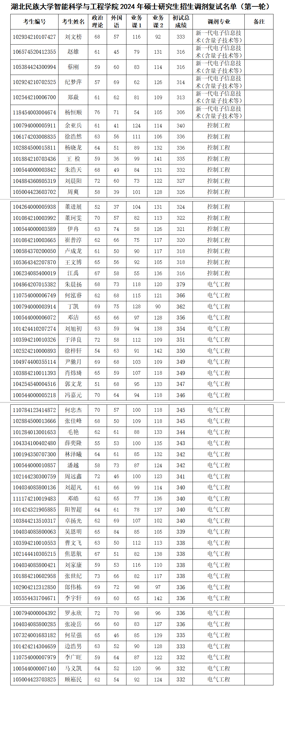 fun88乐体育官网体育智能科学与工程学院2024年硕士研究生招生调剂复试名单(第一轮)