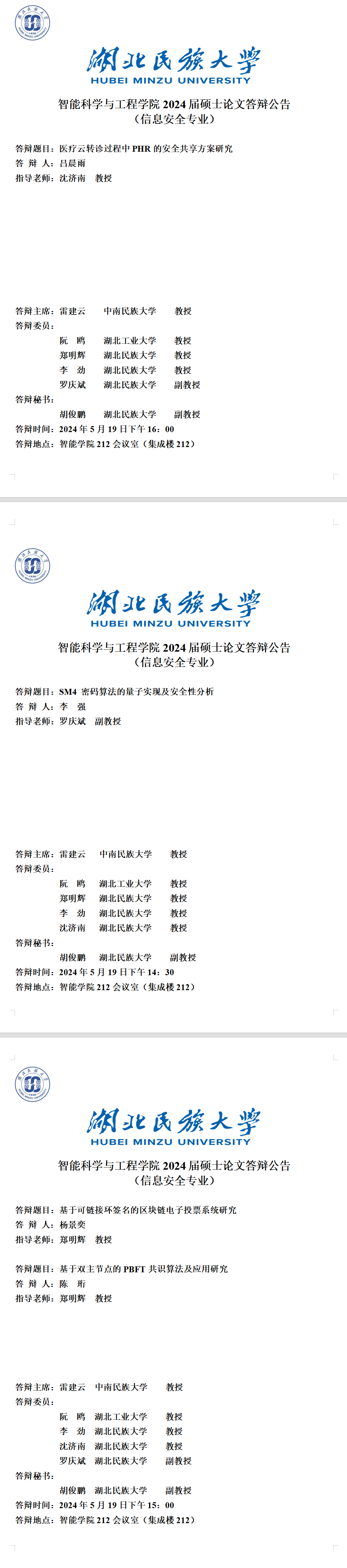 : 智能科学与工程学院2024届硕士学位论文答辩公告(三)