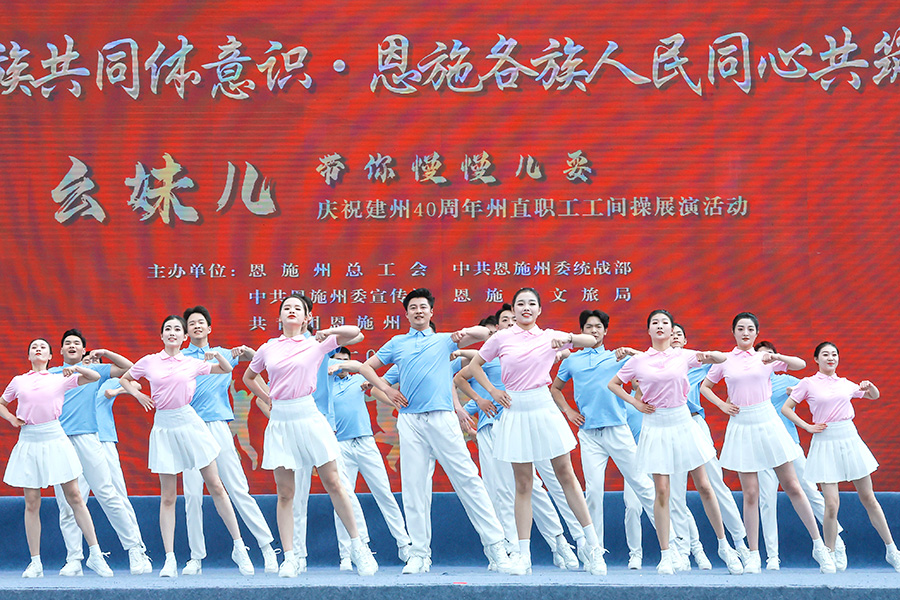 4月11日,铸牢中华民族共同体意识·恩施各族人民同心共筑中国梦——庆祝建州40周年《幺妹儿带你慢慢儿耍》州直职工工间操展演活动在恩施州工人文化宫广场成功举行,由学校工会组织的教职工代表队荣获二等奖。学校代表队展演风采为深入学习贯彻党的二十大精神,切实落实习近平总书记“推动全民健身和全民健康深度融合”的重要指示,庆祝恩施土家族苗族自治州建州40周年,州总工会、州委统战部、州委宣传部、州文旅局、团州委联合...